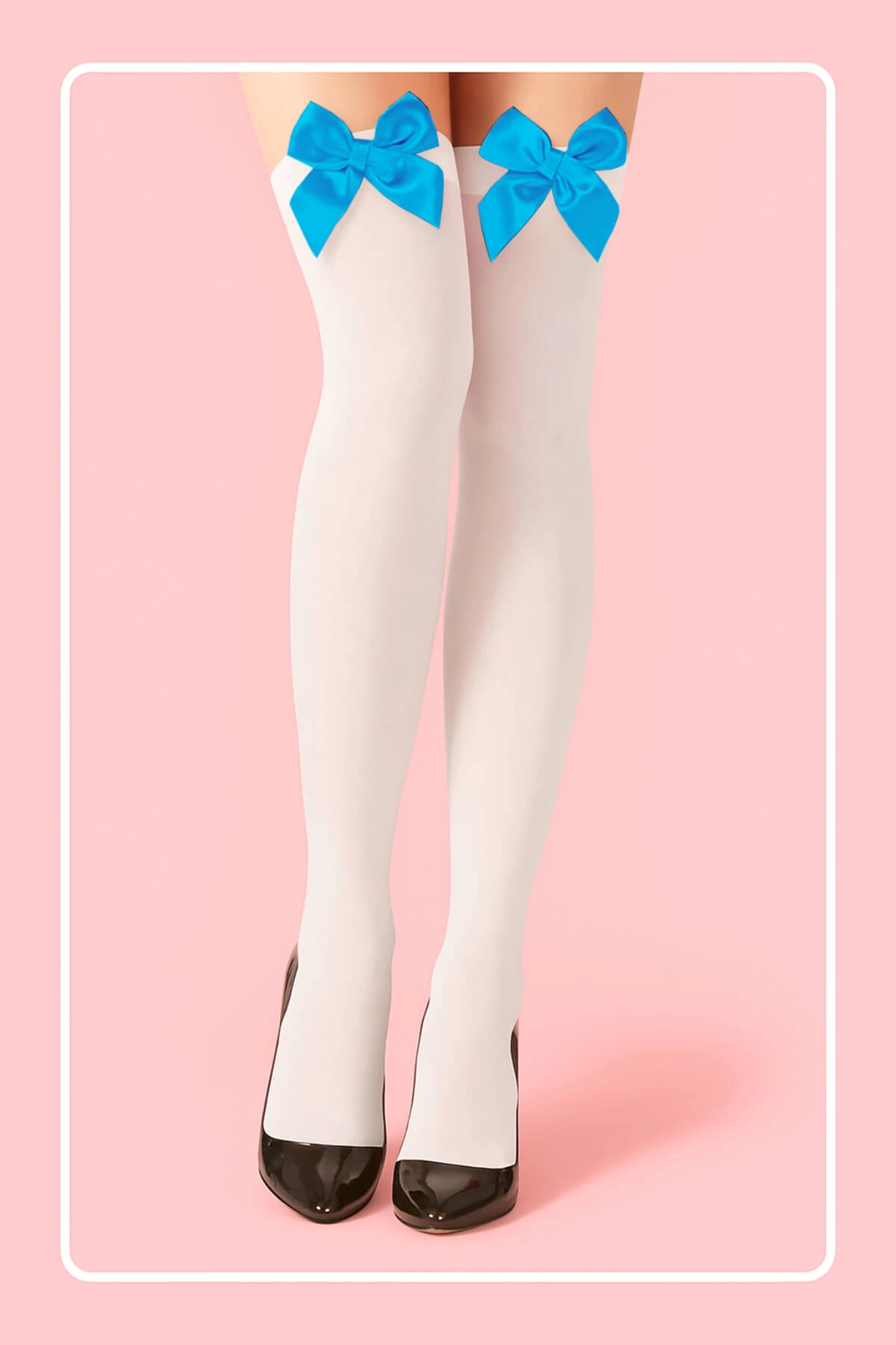 Mavi Fiyonklu Beyaz Jartiyer Çorabı TM1381