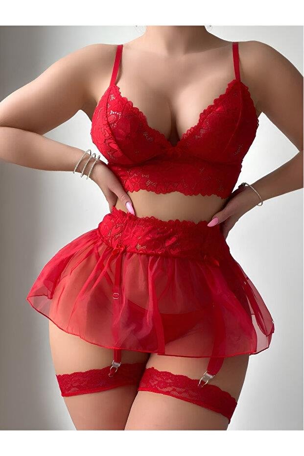 Kadın Kırmızı Kısa Tül Fantezi Kostüm 2199